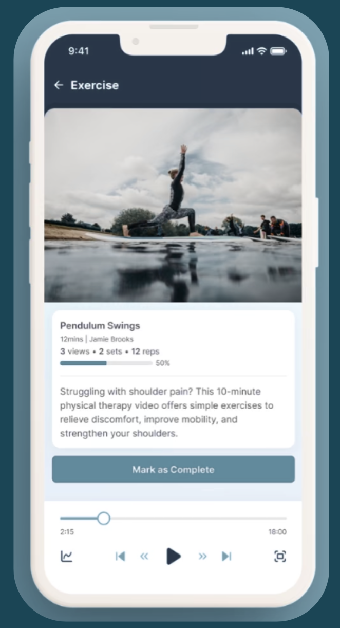 Log exercises, track symptoms, ask questions, and get feedback — all from your phone.